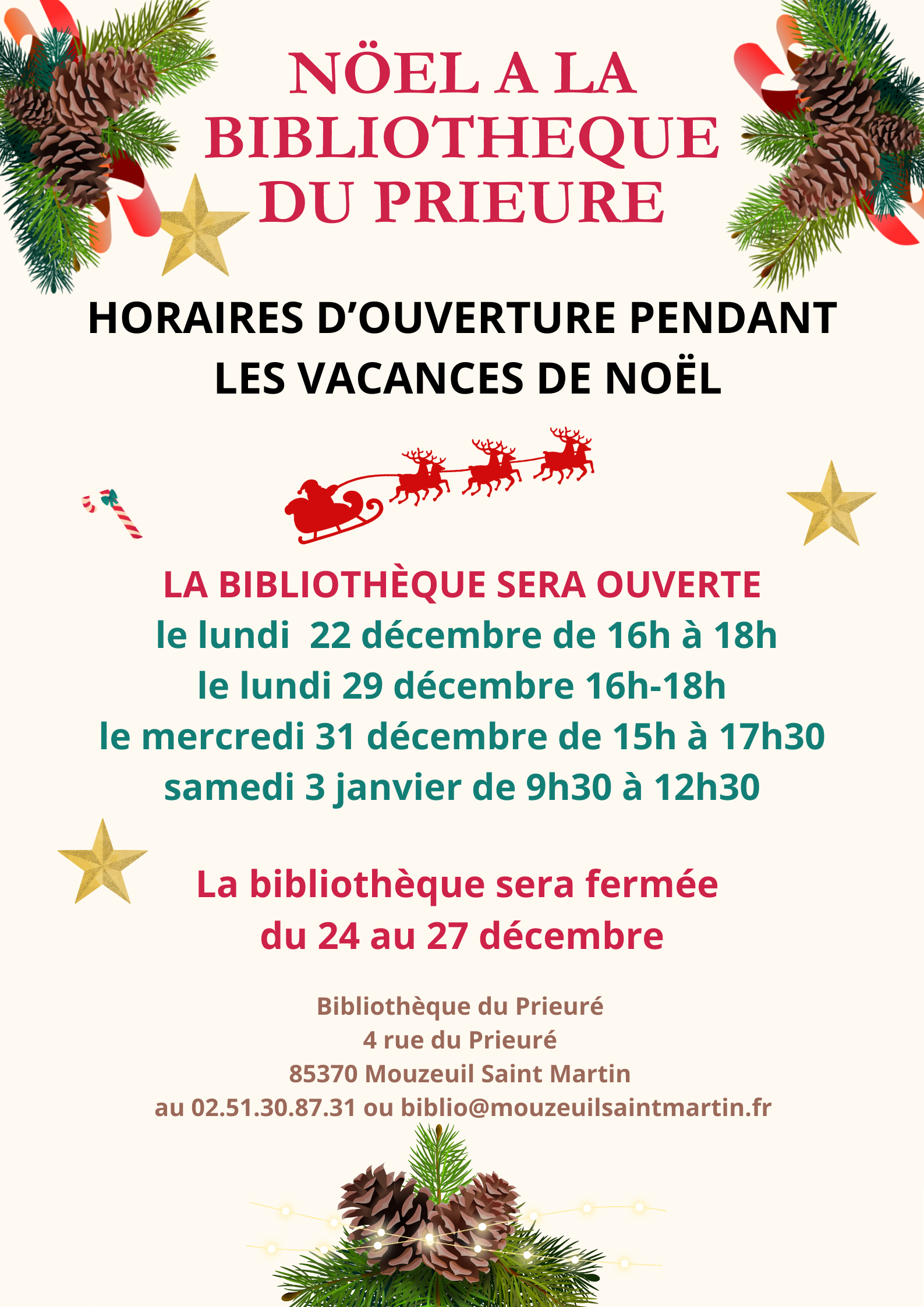 Pour tous renseignements contacter la bibliothèque aux heures d’ouverture